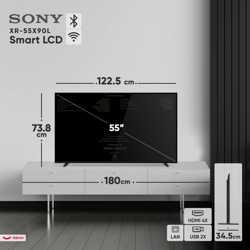تلویزیون هوشمند سونی مدل XR-55X90L سایز ۵۵ اینچ، یکی از پیشرفتهترین محصولات این برند در زمینه نمایشگرهای LED است که باکیفیت تصویر 4K-Ultra HD و رزولوشن ۳۸۴۰×۲۱۶۰، تجربهای بینظیر از تماشای محتواهای تصویری را به ارمغان میآورد. صفحهنمایش تخت با فناوری Direct Full Array LED و نرخ نوسازی ۱۲۰ هرتز، تصاویری روان، شفاف و با کنتراست فوقالعاده را ارائه میدهد. پردازشگر قدرتمند Cognitive Processor XR در این مدل با بهرهگیری از هوش شناختی، تصاویر و صدا را بهصورت همزمان بهینهسازی کرده و کیفیت نمایش را به سطح بالاتری میرساند. تکنولوژیهای پیشرفته مانند XR Motion Clarity برای کاهش تاری در صحنههای سریع و XR Contrast Booster جهت ارتقای کنتراست تصاویر، باعث میشود جزئیات در روشنترین و تاریکترین بخشها بهخوبی نمایش داده شوند. سیستم صوتی تلویزیون سونی مدل XR-55X90L با توان خروجی ۳۰ وات و استفاده از اسپیکرهای Acoustic Multi-Audio صدایی فراگیر و شفاف را تولید میکند. فناوریهای صوتی Dolby Atmos و DTS Digital Surround هم تجربهای سینمایی را در خانه شما شبیهسازی میکنند. سیستمعامل اندروید نسخه ۱۰ امکانات هوشمند متنوعی مانند Screen Mirroring، دستورات صوتی و پشتیبانی از Apple Airplay را فراهم میکند. با ۴ درگاه HDMI و ۲ درگاه USB، تلویزیون سونی XR-55X90L ازنظر اتصالات کاملاً بینقص عمل کرده و امکان اتصال دستگاههای مختلف را بهراحتی فراهم میکند.