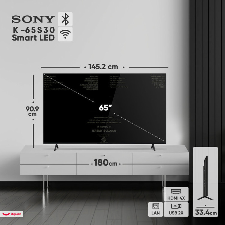 تلویزیون هوشمند سونی مدل K-65S30 با نمایشگر ۶۵ اینچی و رزولوشن 4K Ultra HD، تجربهای بینظیر از تماشای فیلم، سریال و تجربه بازیهای ویدیویی را به مخاطبان ارائه میدهد. این تلویزیون از پنل IPS برای نمایش رنگهای طبیعی و زاویه دید گسترده استفاده میکند و با پشتیبانی از فناوریهای HDR10 و Dolby Vision، جزئیات بیشتری را در تصاویر به نمایش میگذارد. طراحی مینیمال با حاشیههای باریک و بدنه مقاوم و سبک، جلوهای شیک و مدرن به دستگاه میبخشد.